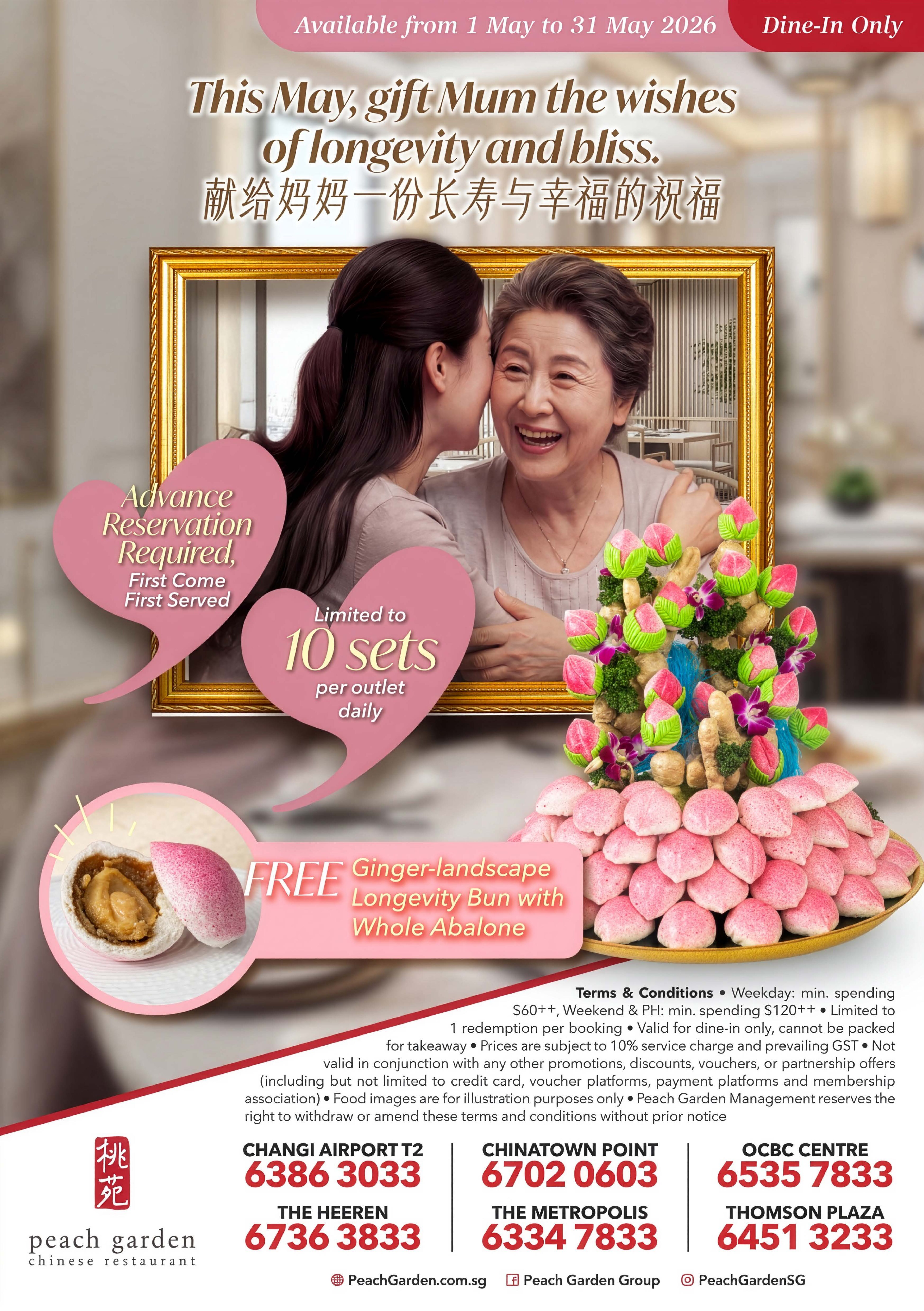 Celebrate this Mother’s Day with a meaningful and delicious treat — our 姜山鲍鱼寿桃 (Ginger-Landscape Longevity Bun with Whole Abalone) 🍑