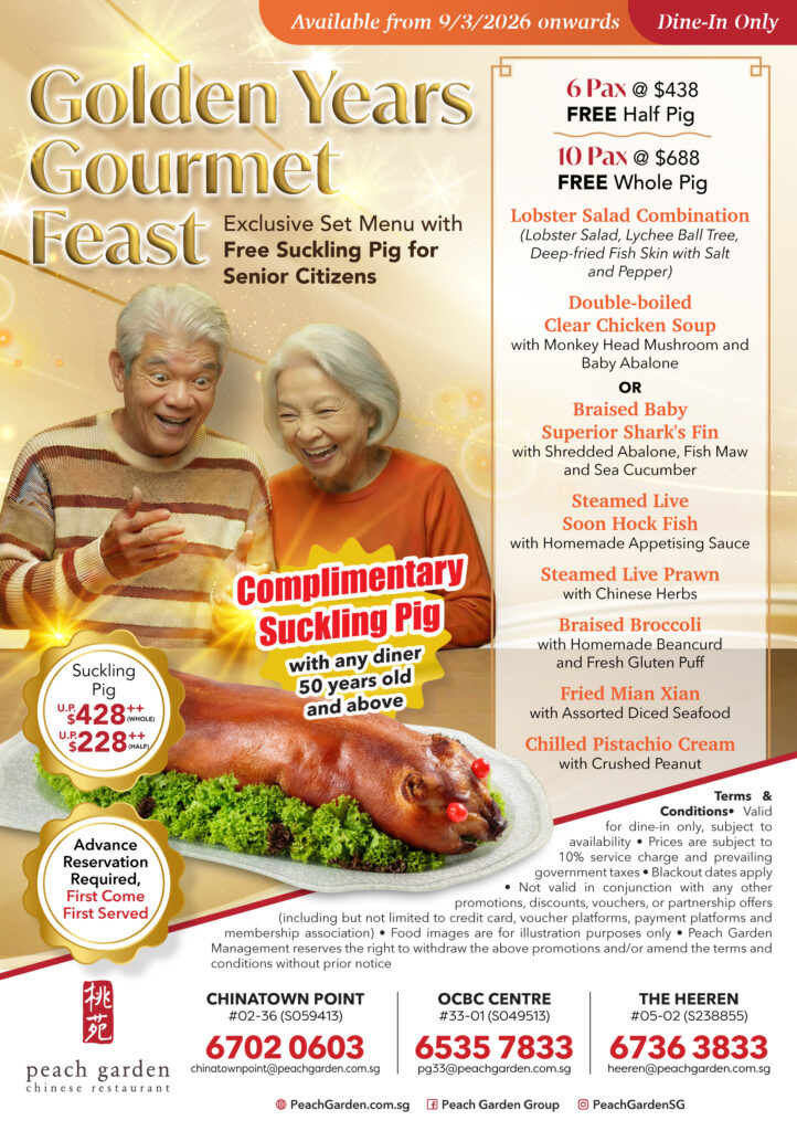 Exclusive Set Menu with Free Suckling Pig for Senior Citizen
